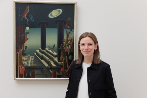 Zunächst wird man mit Werken aus der Sammlung in das Thema der Neuen Sachlichkeit eingeführt, wir haben ja einen sehr schönen Bestand aus dieser Zeit. Das ist der Auftakt. Im nächsten Raum kommen wir dem Menschen Carl Grossberg auf die Spur. Da zeigen wir das einzige von ihm bekannte malerische Selbstporträt in Gegenüberstellung mit Porträts von August Sander. Danach gehen wir chronologisch durch sein Werk. Es gibt ein Thema zum Bereich Innenraumgestaltungen, die er Ende der 1920er-Jahre in Süddeutschland übernommen hat. Dann kommen wir zu dem Thema Stadt und Land, auch mit einer sehr schönen Reihe von Werken aus Amsterdam, wohin er 1925 eine Studienreise unternommen hat. Und dann zeigen wir die Traumbilder unddanach, sozusagen als abschließenden Höhepunkt, seine Maschinen- und Industriebilder. Als Epilog ganz am Ende gehen wir noch mal einen Schritt weiter, verlassen Carl Grossberg und zeigen die nächste Generation ab den 1950er- und 60er-Jahren und schauen, wie das Thema der Dingmagie sich in der nächsten Künstler:innengeneration fortgesetzt hat.