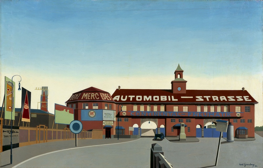 Menschenleere Avus. Carl Grossberg, Berlin, AVUS, 1928, Öl auf Sperrholz, 44 x 70 cm, Privatsammlung SüddeutschlandWie wandert man durch die Ausstellung im Wuppertaler Museum?