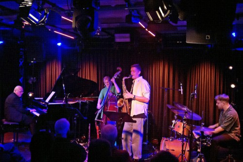 Im Loch spielt sie mit ihrem Quartett inklusive Zugabe elf Nummern, zwei zu Beginn der beiden Konzerthälften ohne den Pianisten. Wulff glänzt am Kontrabass und beim Eingangsstück mit ihrem Sopran-E-Bass mit hoher Virtuosität, groovenden Riffs, sensiblen Momenten und variablen Soli. Die drei Musiker ihrer Band harmonieren hervorragend miteinander. Über Frank Chastenier viele Worte zu verlieren, hieße Eulen nach Athen zu tragen. Von 1991 bis 2018 war er der Pianist der WDR Bigband. Mit einer großen inneren Ruhe gestaltet er seine ausgedehnten Improvisationen, die er ganz leise, schlicht und langsam bis hin zu eruptiven Höhepunkten entwickelt, einhergehend mit geschickten harmonischen Rückungen, donnernden, rhythmisch variablen Akkordkaskaden und einem verspieltem Umgang mit Themen, Motiven und Melodien. Adrian Hanack, ein ehemaliges Mitglied des Bundesjazzorchesters, entlockt dem Tenorsaxophon, der Klarinette und der Querflöte lyrische, aber auch forsch-selbstbewusste Töne und versteht sich auf freie Improvisationen. Äußerst sensibel geht Valentin Renner mit seinem Trommeln und Becken um. Der mit mehreren Preisen ausgezeichnete Schlagzeuger sorgt bei flotten Passagen nicht nur für viel Schwung, er ist auch selbst bei komplexen Rhythmen ein verlässlicher Partner und atmet bei den Soli seiner Kollegen mit.